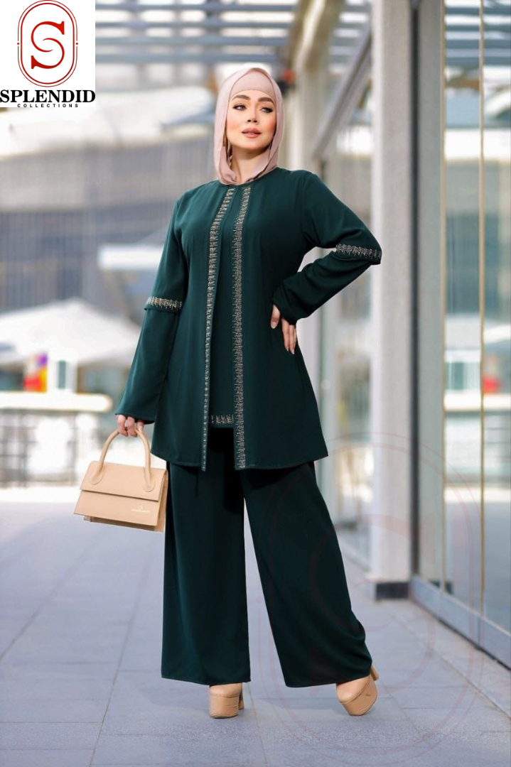 This elegant, classic tunic features long sleeves and is paired with wide-legged trousers for a timeless look. Perfect for any occasion, this outfit exudes sophistication and style. Whether dressing up or down, our tunic and trouser set is a versatile and stylish addition to any wardrobe.
